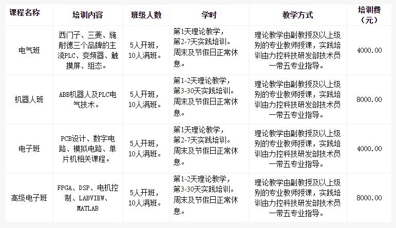 培訓費含學費,設備租用費(人為損壞設備的照價賠償)、耗材費,工作日中餐。不含路費,住宿費,工作日早晚餐及雙休時的三餐費用??蓞f助安排食宿,費用自理。